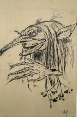 La imagen del diablo surgió de modo sorpresivo, expresando mediante ella la fuerza de la cólera que la paciente verbalizaba en repetidas ocasiones cuando llegaba al taller, sintiéndose avergonzada y temerosa de lo que el resto del grupo diría o podría pensar, pero más aliviada de haber sacado afuera ese “monstruo que llevaba dentro”. La impresión de su propia producción e implicación en dicho proceso posibilitó, en la sesión siguiente, dejar de “hablar de la cólera” y comenzar así un proyecto de creación individual que tituló “Hadas de conocimiento”.