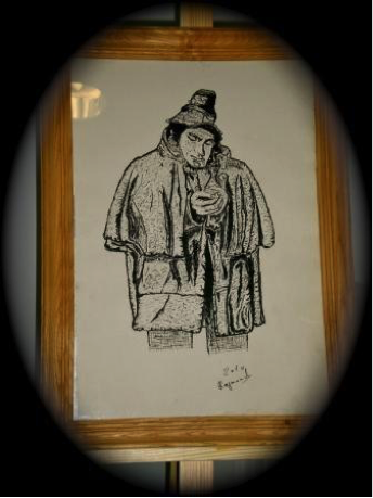 - Figura 8. «El hombre del cigarrillo, autorretrato de una miseria avanzada». Tinta china sobre papel.