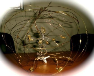 Desde esa confusión tomó un hilo de alambre fino y comenzó a dar vueltas sin saber qué hacer, ni cómo… y así empezó a realizar círculos que poco a poco fueron tomando cuerpo, tornándose en una escultura de alambre representada por una sucesión de vueltas unidas y sostenidas en algún punto, que lograba equilibrio al ser apoyada en una superficie.